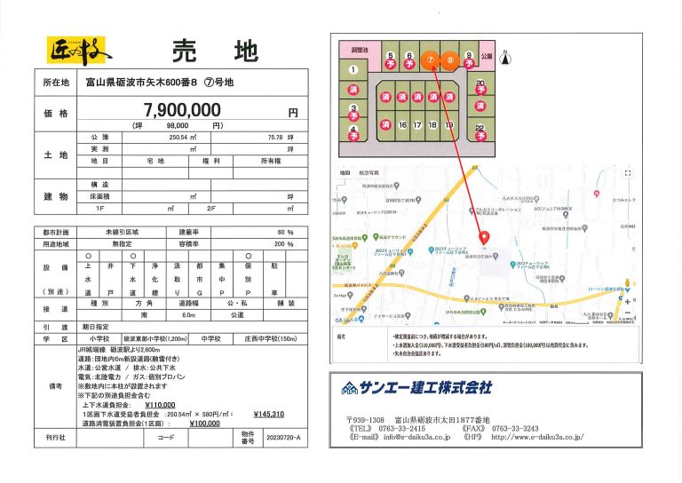 - 学区小学校/砺波市立砺波東部小学校(1,200m)、中学校/砺波市立砺波庄西中学校(150m)